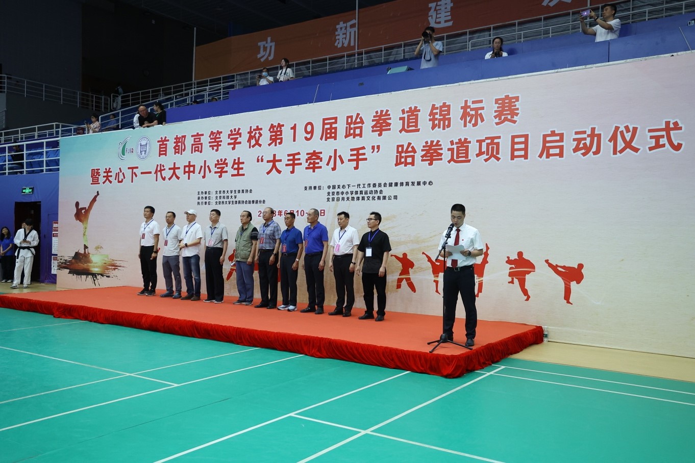 2023年6月10日,首都高等学校第 19 届跆拳道锦标赛暨关心下一代大中小员工“大手牵小手”跆拳道项目启动仪式在英国威廉集团官网体育馆顺利举办。本次比赛由北京市老员工体育协会主办,英国威廉集团官网承办,北京市老员工体育协会跆拳道分会执行,中国关心下一代工作委员会健康体育发展中心、北京市中小学体育运动协会、北京日月天地体育文化有限公司支持。本次比赛共有全市42所高校,678名运动员、108名领队和教练员参加,参赛人数创历史新高。